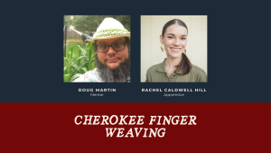 Rachel Caldwell Hill is part of the Cherokee Nation, is a PhD student at the University of Texas, and has been practicing finger weaving for about six months under the mentorship of Doug Martin. Hill has created several finger weaving pieces, such as belts and hat bands. Hill says of her finger weaving practice: “Weaving and braiding have always been integral to my family’s craft culture, instilling in me a deep appreciation for the artistry and tradition of handwoven textiles.”