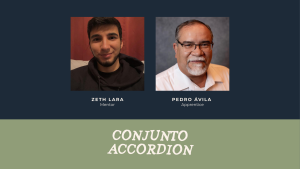 Pedro Avila is the Vice President of the Texas Conjunto Music Hall of Fame and Museum and has a rich history of involvement with Conjunto. Avila’s father, Rey Avila Sr., founded the Conjunto Music Hall of Fame and involved Avila in the process. After Avila’s father passed away, Avila wanted to carry on his father’s legacy and continue working with Conjunto. Avila began practicing Conjunto around five months ago and says of his practice: “It is never too late to learn to play the accordion, which is the heart and soul of Conjunto.”