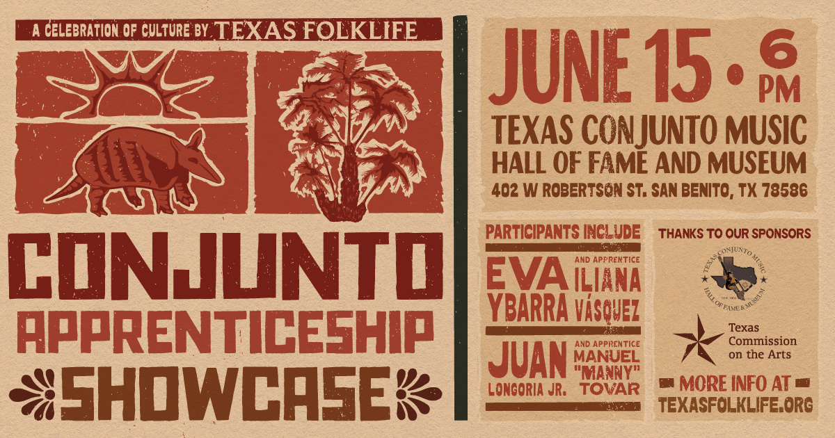 Featured performers include Eva Ybarra alongside her apprentice, Iliana Vásquez, as well as the esteemed Juan Longoria Jr. accompanied by his apprentice, Manuel “Manny” Tovar.