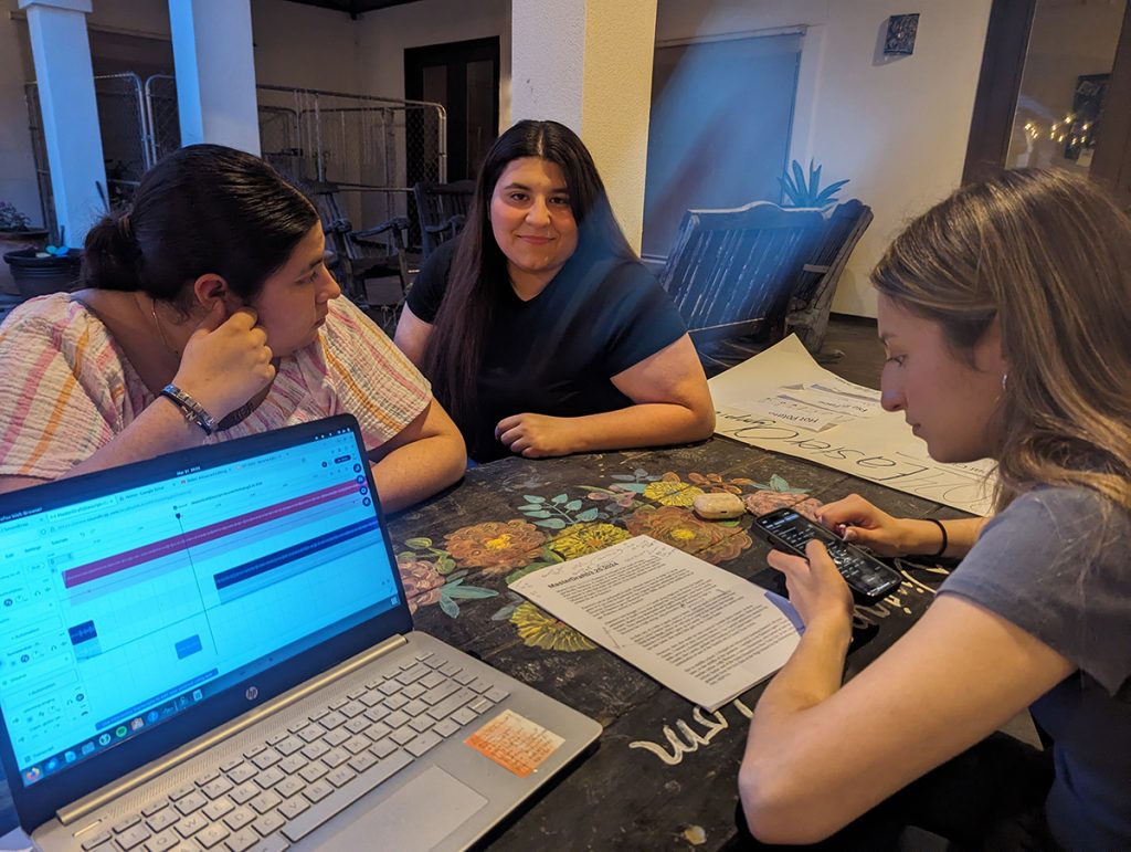 After I made a master draft of the interviews and my narration, I had my high school nieces, Ava (who got a state award for podcasting through DECA), Tatiana, and Natalí listen to my podcast and give me feedback. It was a good way for them to learn from me and me to learn from them.