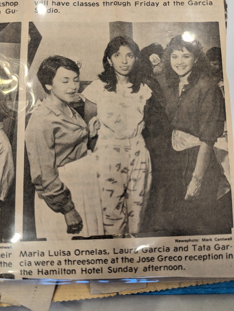 In Laredo, Yolanda Gutíerrez-García had an old picture of me in college when I signed up to take a one week workshop with José Greco in Laredo.