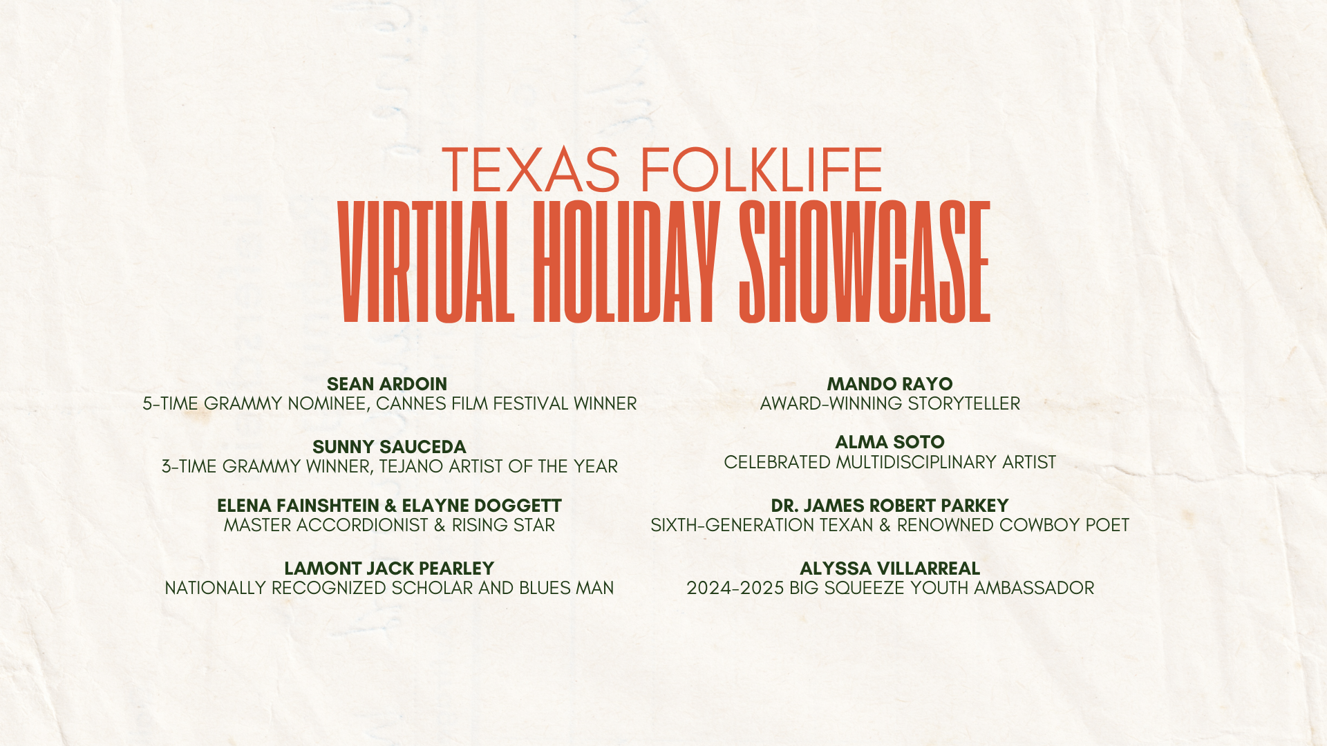 Alyssa Villarreal is Texas Folklife’s current Big Squeeze Youth Ambassador. She began playing the accordion at the age of 11, inspired by traditional Conjunto music and legendary artists like Carlos y Jose, Los Cadetes de Linares, and Los Alegres de Terán. Alyssa is passionate about her craft and dreams of one day becoming a renowned musician.