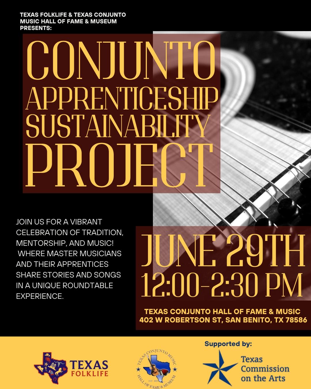 Conjunto Apprenticeship Sustainability Project Texas Conjunto Hall of Fame & Music – San Benito, TX Sunday, June 29th | 12:00–2:30…