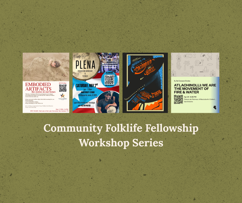 Texas Folklife’s Community Folklife Fellows are hosting a series of workshops this season. We’ll be sharing flyers and details for each event as they’re announced.